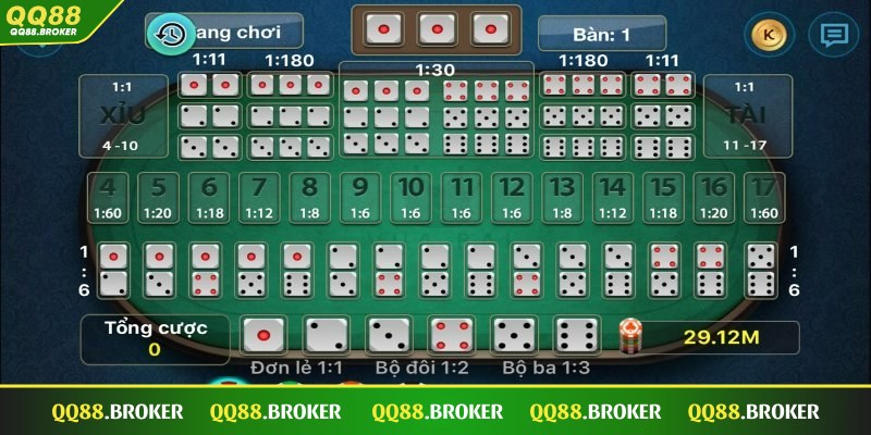 Luật chơi của game Tài Xỉu QQ88 khá đơn giản: người chơi chỉ cần dự đoán chính xác kết quả của ba viên xí ngầu theo từng cửa cược. Khi xuống tiền, điều quan trọng là bạn phải chú ý đến tổng điểm của mỗi viên xí ngầu và tỷ lệ ăn tại các cửa cược trong. Cụ thể: